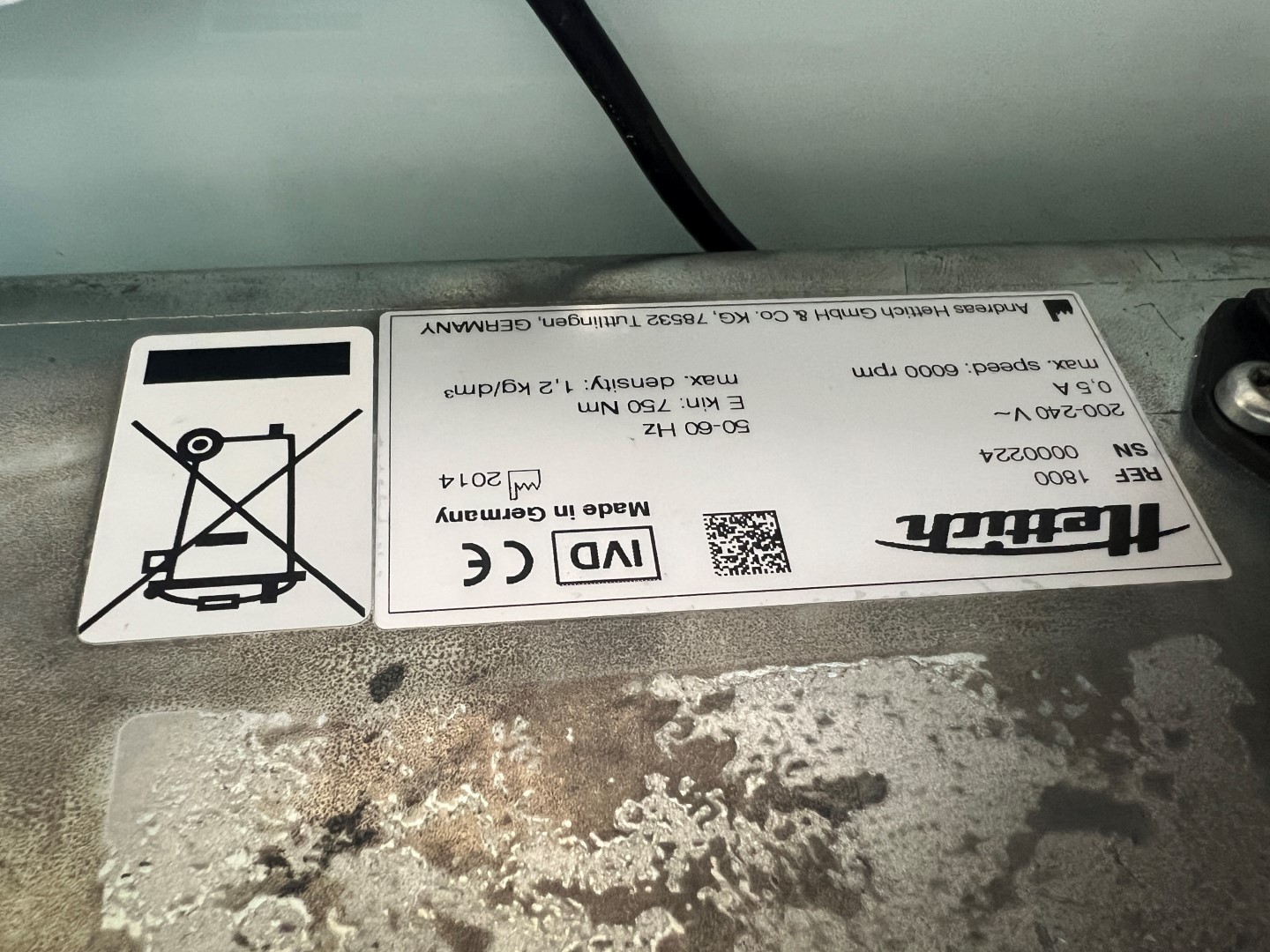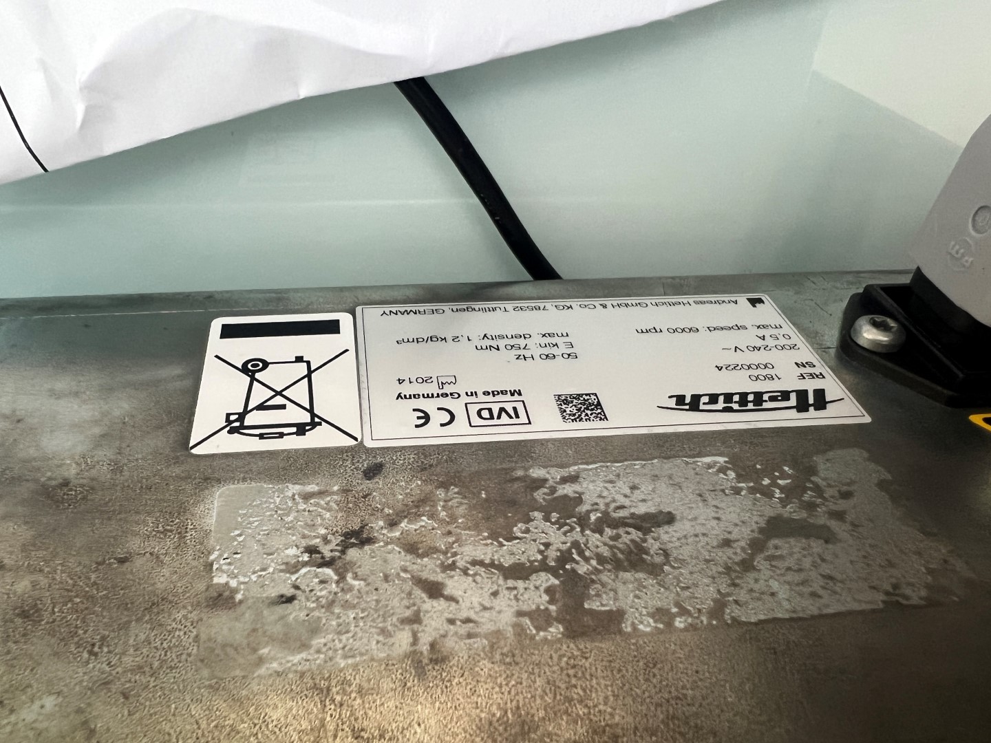 Compact benchtop centrifuge manufactured by Andreas Hettich GmbH & Co. KG (Tuttlingen, Germany). Model EBA 200, REF 1800, SN 0000224, year of manufacture 2014.