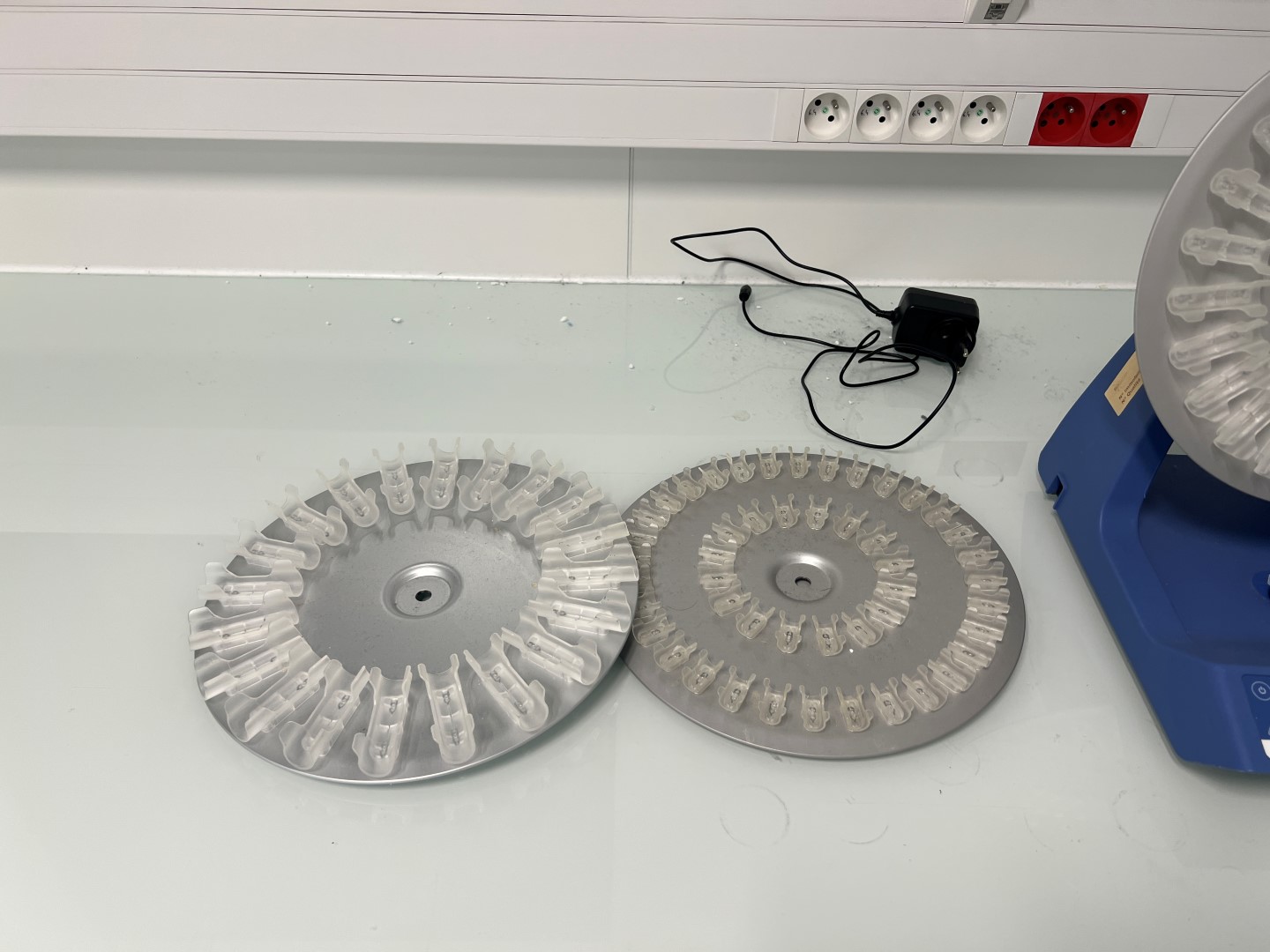 – 2× aluminium wheel-type rotor discs with transparent plastic tube holder clips (PCR strips / micro-tubes compatible)