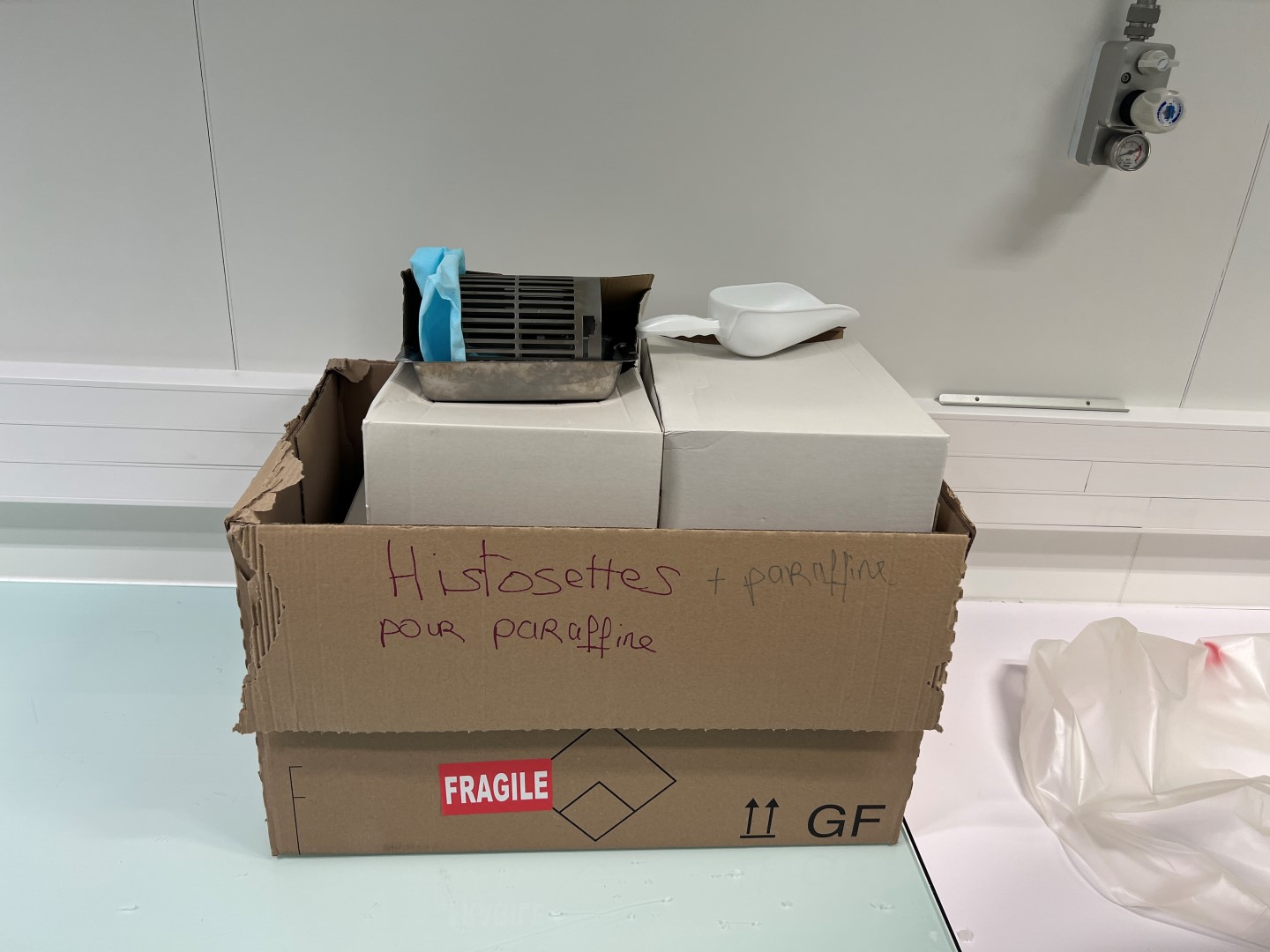 12 × stainless-steel/aluminium reagent jars (installed; labelled EtOH 70%, Xylène ×2, etc.)