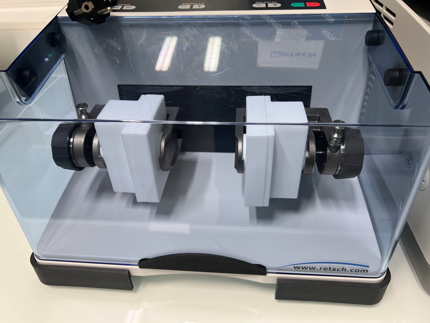 2 × PTFE grinding jar holders (mounted)