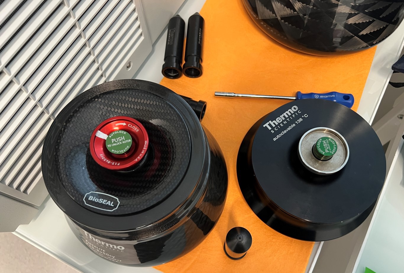 FIBERLite® F14-6×250 LE — 6 × 250 mL fixed-angle, carbon fiber, BioSeal lid, AutoLock