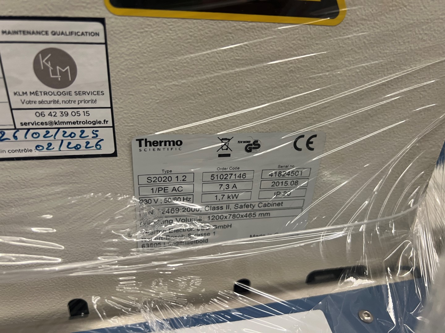 Thermo Scientific biological safety cabinet, model Safe 2020, type S2020 1.2, serial number 41824501, manufactured in 2015 in Germany by Thermo Electron LED GmbH.